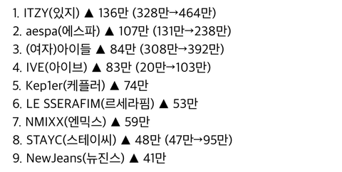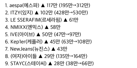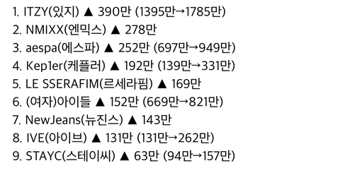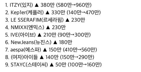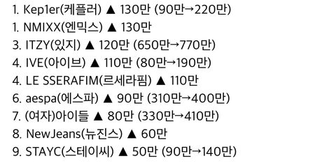 2022년 4세대 걸그룹들 해외 팬덤 지표