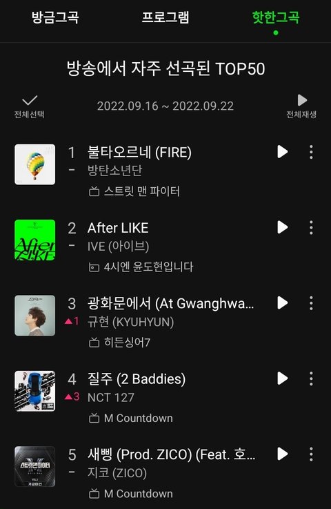 일주일동안 자주선곡된 노래 질주! 인증ㅇ