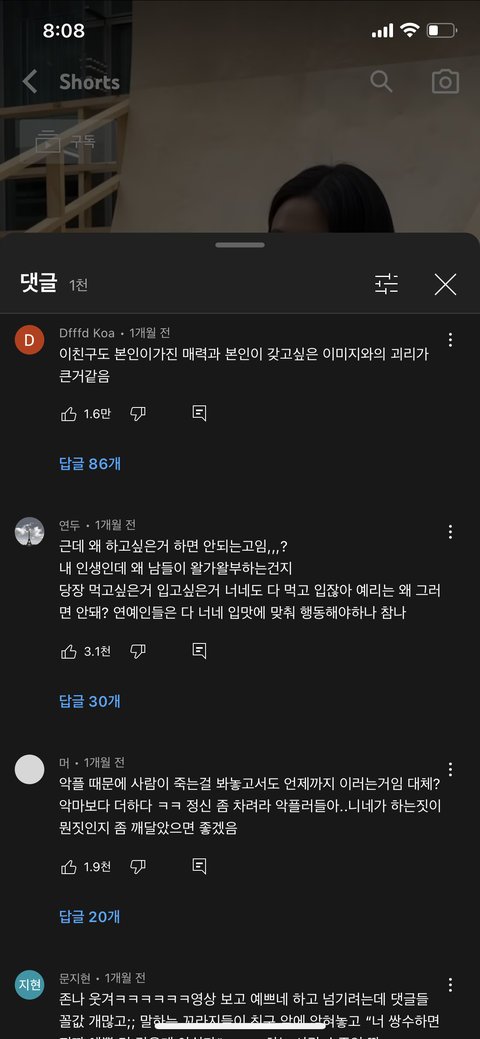 예리 쇼츠 댓글 개판났네