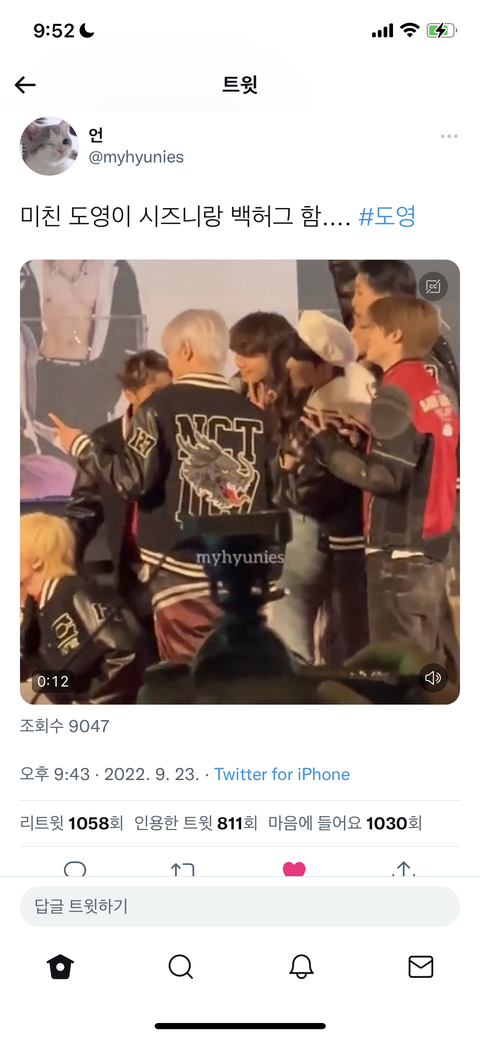 시즈니 백허그함 도영이가 (인증햇더)