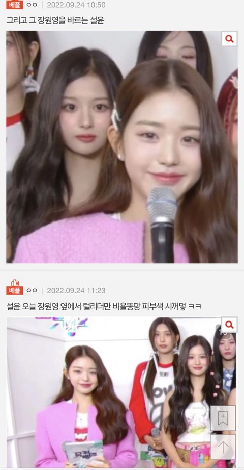 이영지가 더 앞으로 나와있잖음 장원영이 탈인간인것도 맞는데 그래서 더 부각되는거겠지.. 글고 니같은 방구석 여포인생은 장원영옆에 설 일 없으니까 쓸데없는 걱정말고 가서 공부나 혀