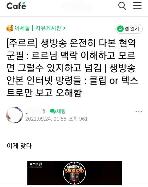 워낙 팬덤이 견고하다보니 + 얼굴 안까고 방송하니