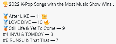 2022년 음악방송 1위 최다 횟수 1위 달성