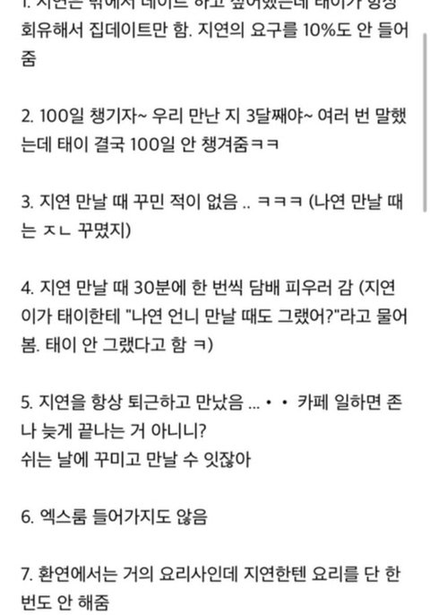 집데이트만 하려고 하기╋퇴근하고 늦게 만나기 ㅋ.. 진심으로 좋아한 건 아닌 듯 걍 나이 어리니까 만난 느낌