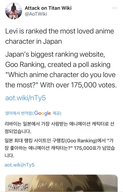 리바이 인기투표 1위함!!