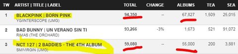 다음주에 뜨는 블핑 피지컬 6만 7천, 전체 9만 4천