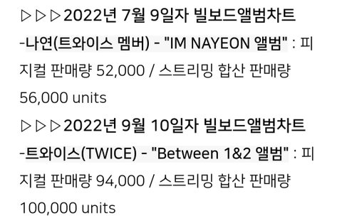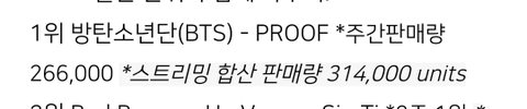 피지컬 판매량 = 주간 판매량 = 즉 실물 앨범 미국 초동임
