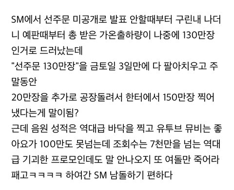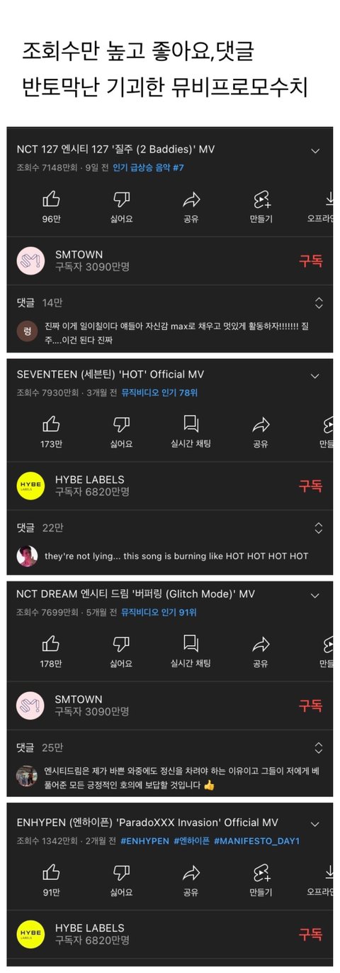 엔시티127 프로모 어쩌구ㅋㅋ 사재기다,실조회수가 낮다 이러는데 뭐가 그렇게 꼬아서 닥달임? 지금 확인 해보니까 실조회수로 5위인데 그리고 사재기 이러는데 말이 되는 소리 좀 ㅋㅋ 말도안되는 근거 가져와서 논리적인척 함..