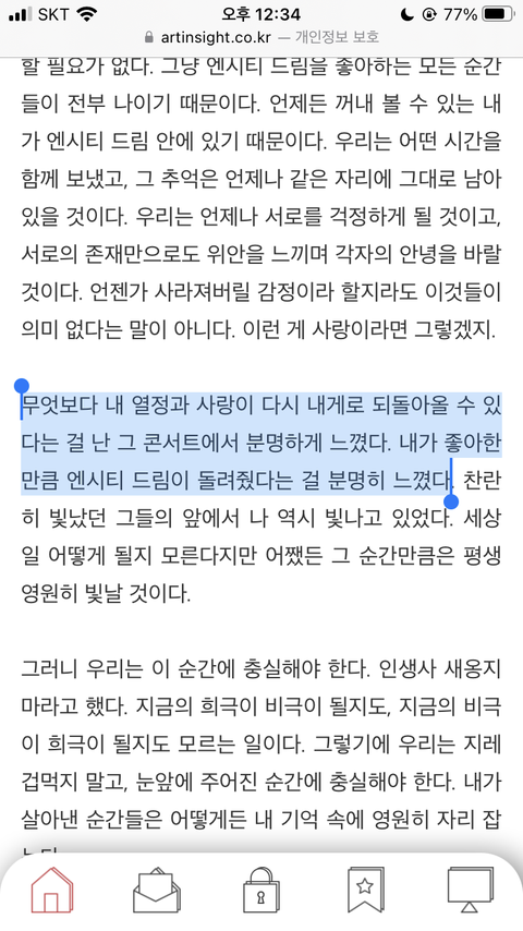 진짜 너무..너무 내가 느끼는 감정들이 글에 써져있어서 ㅠㅠㅠ 너무 눈물나 …