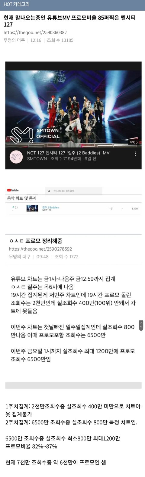 뮤비 조회수 프로모 85퍼라고 더쿠 핫게 갔다는데?
