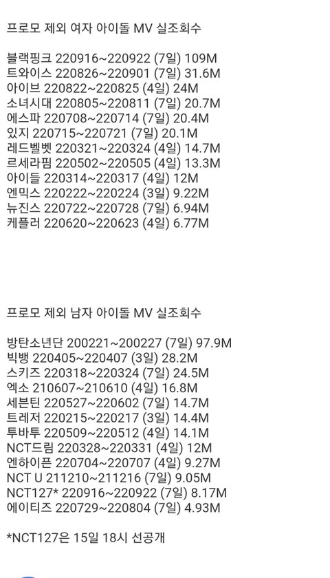 올해 남돌들 실조회수 ㅇㅇ