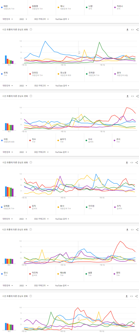 2022년 현재까지 국내 유튜브에서 가장 많이 검색된 여자아이돌 TOP25