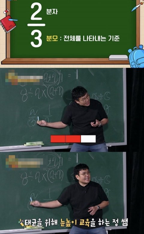 3분의 2 = 3칸 중 2칸이라는 것을 이해 시키고 있는 정승제 생선님.....