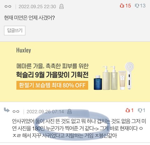 아이디때매 삭제되는건가?? 가설2는 개 ㅈㄹ이고 첫 시작은 수진 팬 맞음ㅇㅇ 그때 해명하던 미연 팬들 ㅈㄴ 빡쳐서 수슈나 쳐 빨라고 했잖움 원래 수진팬들이 극성임 후이랑 터졌을때도 후이 얼마나 쳐맞았냐ㅋㅋㅋㅋㅋㅋㅋㅋㅋㅋㅋ 보통 여돌이 쳐맞는 경우가 대반사인데 물론 수진이 쳐맞으라는 건 아닌데 ㅎㅎ 좀 그래