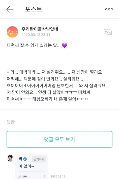 정호석이랑 김태형 댓글차이