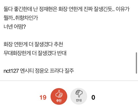둘다 좋긴한데 난 정재현은 화장 연한게 진짜 잘생긴듯.. 이유가 뭘까..취향차인가