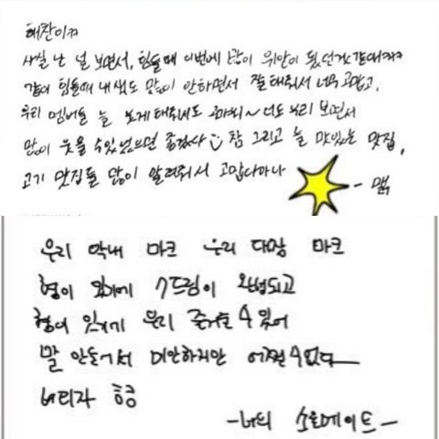 마크 해찬이는 보고있으면 기분이 되게 요상하다 해여하나 서로 얼마나 의지할까 생각하면 마음이 막 그래 미마클 때도 그렇고 마크가 해찬이 같은 애 본 적이 없다고 할정도로 정반대 같아보였는데 10년 가까이 타유닛╋ 드림 그 빡센 스케줄을 다 함께하면서 소울메이트가 되었다는게...ㅠㅠㅠㅠ 아마 우리는 상상도 못할 정도로 서로에게 큰 존재일거 같아