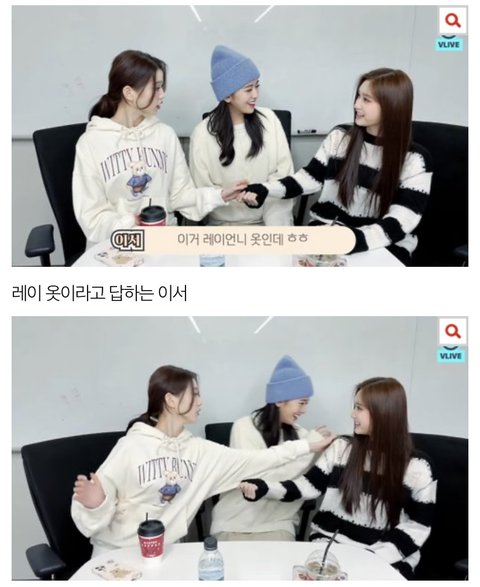 이서가 레이 옷이라고 말하자 유진이와 원영이가