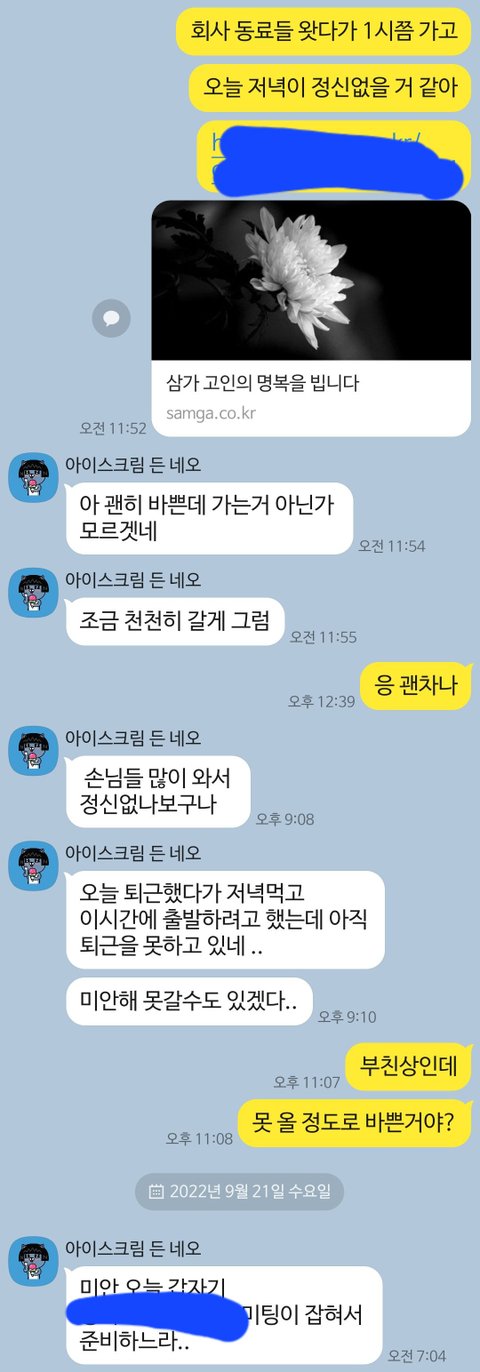 얼마나 바쁘길래 부친상인데도 못오냐고 했고