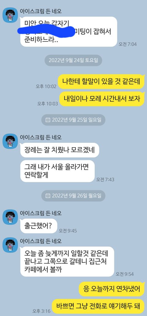 밤 9시에, 저렇게 바빠서 못오겠다는 카톡 왔어요
