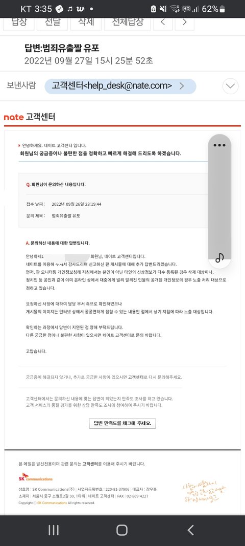 사생활 2차 유포한걸 신고했더니 이렇게 오는데