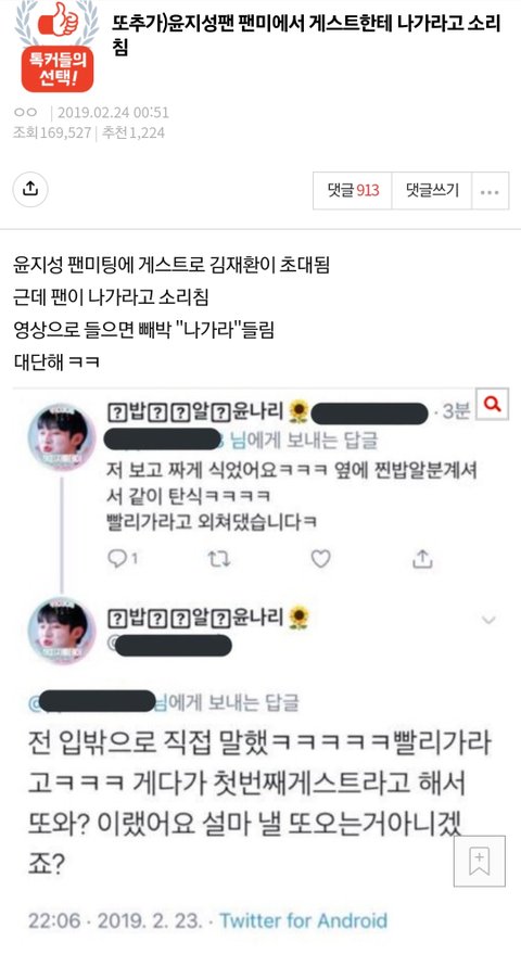 그냥 워너원 팬덤 자체가 악개 싸움이 심했지 해체하고 팬미팅 게스트로 ㄱㅈㅎ 왔는데 돌 앞에서도 이랬는데 뭐
