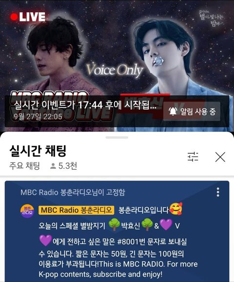 태형이 별밤 너튜브 주소