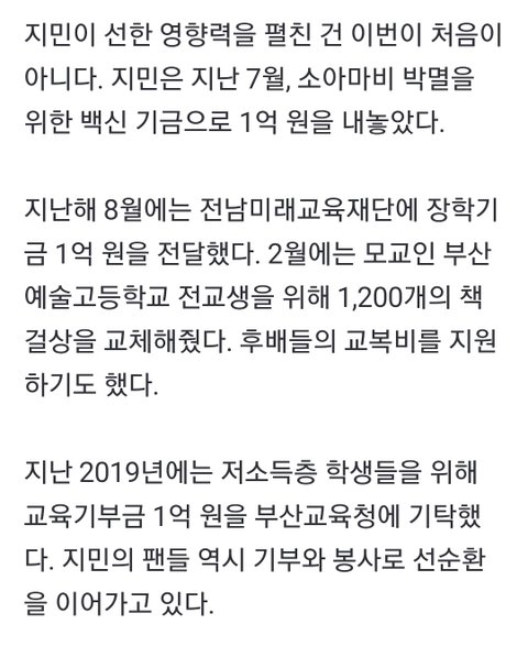 어떤 쓰레기는 방탄 돈도 많이 벌면서 기부도 안한다고 지랄하던데 이런 얘기나 기사뜨면 눈 쳐 감고 일부러 안보나봄.. RM은 조선시대 궁중 활옷 미국 어느 미술관이 소장하고 있는거 국내로 들여와서 전시하는데 사비로 기부 했다던데 그런건 기사로 크게 안 나서 잘 모르는듯