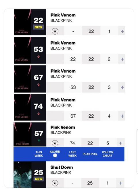 블핑 핑크베넘 빌보드 핫백 5주 째 차트인
