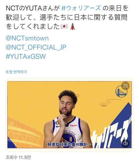 ㅌㅇㄴ윳따랑 스테판커리 농구팀이랑 같이 영상 찍음.. 이름도 불러주심ㅋㅋㅋㅋㅋ 우리 천러 개부러워할듯