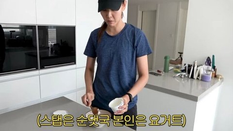 스탭들 순대국 시켜주고 본인은 그릭요거트만 먹음