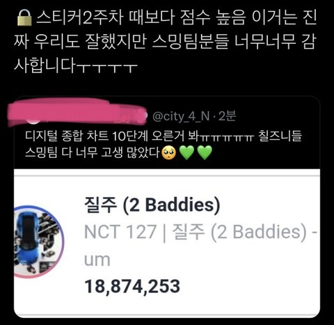 우리 스티커2주차때보다 이번 질주 점수가 더 높대ㅐ