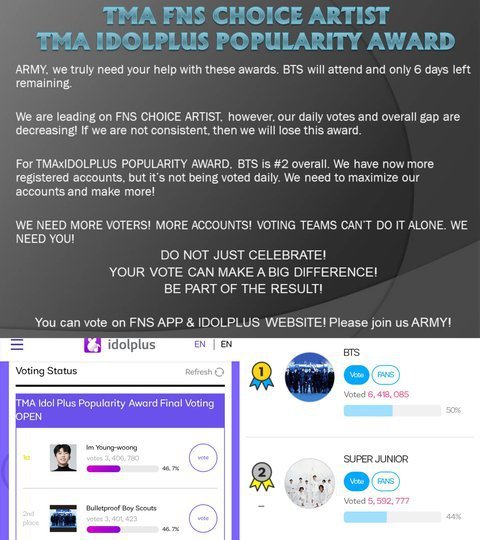 BTS is loosing these days. Our boys are attending this award. Please create more Gmail and FB accounts. Those who haven’t joined us yet, please know that the fate of this voting is on your hands. You are the only ones who can change the result. We have only 5 more days.