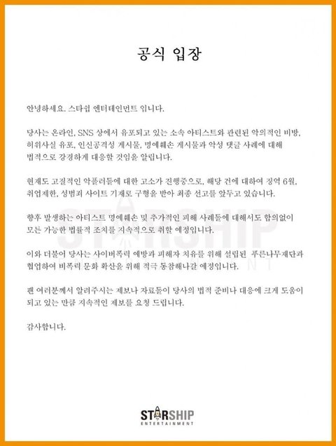 스타쉽에서 고소공지도 떳으니 바로바로 따서 보내자