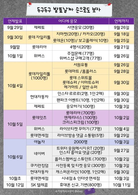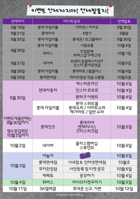 이벤트 응모랑 발표일 정리한거래 ㅇㅇ