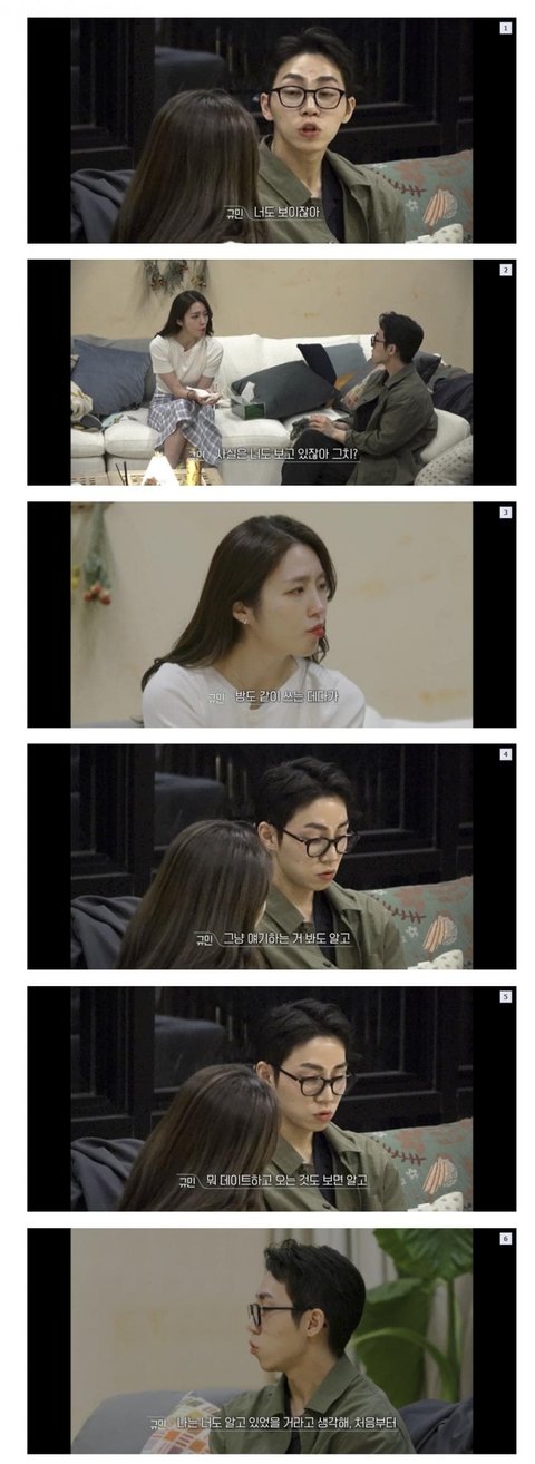 규민 진짜 너무해 진짜로.. 무려 7년 사귀면서 해은이가 눈물많은사람이라는거 뻔히 다 알건데 어떻게 만난지 일주일도 안된 현규보다 해은이 마음을 몰라주고 오히려 더 아프라는듯 콕콕 찌르기만 함..? 다같이 회의 끝나고 거실에 모엿을때 해은이 오열하는데 다른 남출들 다 걱정하는데 지혼자 팔짱끼고 무게잡고 잇음ㅋㅋㅋ 진짜 정털린다 그래놓고 예고편에서 뭐 질투나니마니 하면서 생각해보겟다고 또 해은이 흔들고; 언제는 해은이가 진짜 좋은 사람 만낫음 좋겟어서 확실하게 선긋는다고 차갑게 구는거라해놓고 현규같은 남자가 해은이 탐내니까 왜갑자기 흔드는데요ㅋㅋㅋ