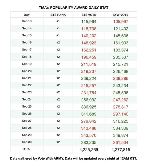 해외보팅팀 1일 투표 추이