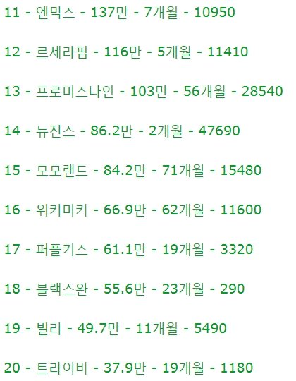 프로미스나인 뉴진스 모모랜드 위키미키 퍼플키스 블랙스완