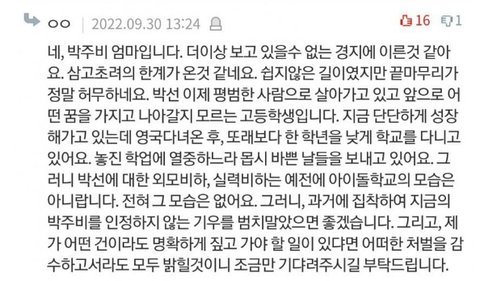 박주비 엄마라는 사람 글 올라온다vs안올라온다