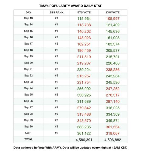 해외보팅팀 1일 투표 추이