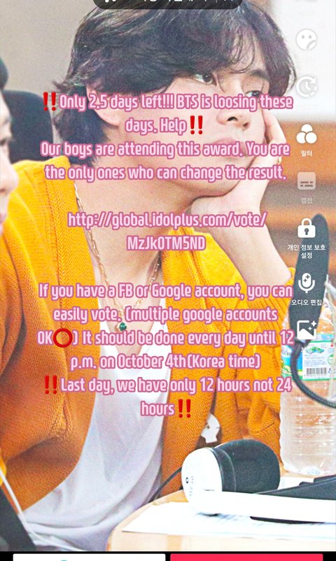 설명이랑 같이 투표 링크 고정댓에 박아두는거 어떻게 생각함? 다른 팬들이나 상대쪽이 볼수도 있어서 틱톡엔 안하는게 좋을라나? 좋아요 250K에 팔로워 3000 가까이 정도긴 함 대부분 해외팬들일듯