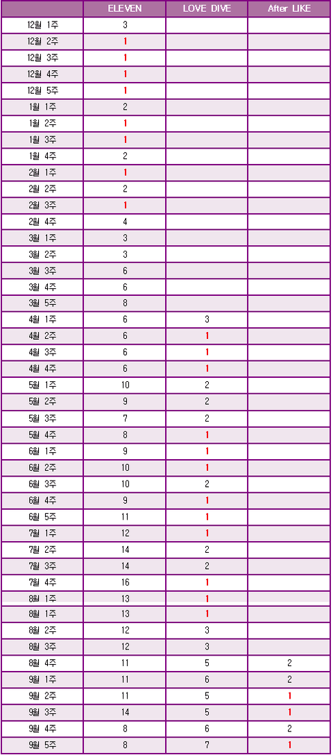 아이브 데뷔후 유튜브 뮤직 주간순위