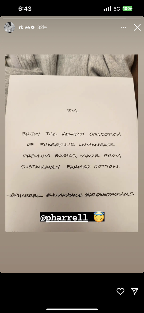 남준이랑 정국이 퍼렐이랑 콜라보한다는 얘기 있거든 근데 남준이 인스스보고 놀람