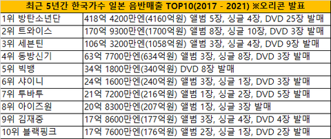 1위 방탄소년단 4160억원