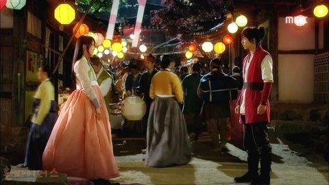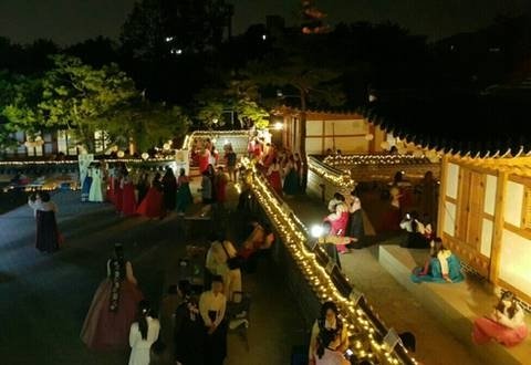 호롱불,연등 달아놓고 거리에는 가야금 노래가 잔잔하게 들려오고 왁자지껄하게 물건 파는 사람들과, 음식 먹는 사람들로 가득 차고 그 거리를 한복 입은채로 활보해야 함