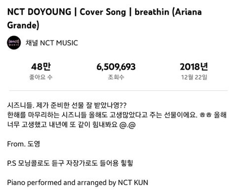 쿤이 피아노 작곡다해주고 곡 줬는데 도영은 지혼자 한거마냥 고마움 마음1도 없다고 까는사건 근데? 놀랍게도 by KUN 이라고 적혀있음. 스엠이 올린건데?ㅋㅋㅋ스엠이 올렸든 뭐든 쿤이라고 써있음 또한, 도영이 쿤한테 고맙다고 사적으로 뭘해줬네 보니깐 도영이 쿤한테 고맙다고 밥사준거 인증^^ 역시 억까