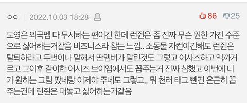 미안한데 억쉴아님? 텐보고 한국말 못해서 너랑하면 재미없고 방송분량 안나온다한거 팩트잖아 그리고 런쥔뒷담이랑 왜 그런부분은 쏙뺌? 도영악개들은 멤버까는데 미친 네임드 플럼이나 말려 도놀모 느그가 만들어놓고 도영이 놀리는건 생각도 안하고 타멤만 까대는 도영악개 무리들 없어지지않는한 여론안바뀜ㅋ판까흥은 무슨ㅋㅋ도영의 타멤까내리면서 맨날 도프면서 일부러 엔시티글마드 엔시티는 도영이 인성만 믿고간다 ㅇㅈㄹ 타령한 인성영업 결과=지진 공중파뉴스진출 쟈니는 멤버들한테 덕담만 하는 멤인데 오죽하면 도영보곤 자기 장점 어필보단 다른 멤버 단점을 더 찾으려는 멤버라고 돌려말했을까?