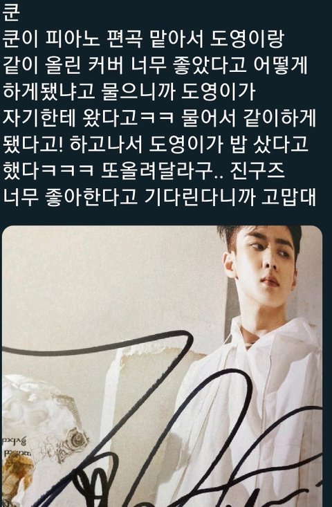 쿤이 도와주고 도영이가 밥 사줬다고 쿤이 말했음..... 제대로 알고나 까라