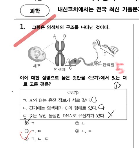 중3 과학 아무리봐도 저 ㄷ번 DNA문장 틀린 말 같은데 정답이랴…………..고