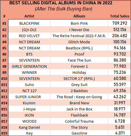 이건 2022년 중국에서 음원 대량중복구매금지이후로 kpop판매량